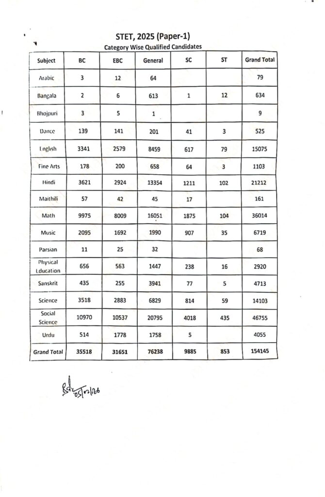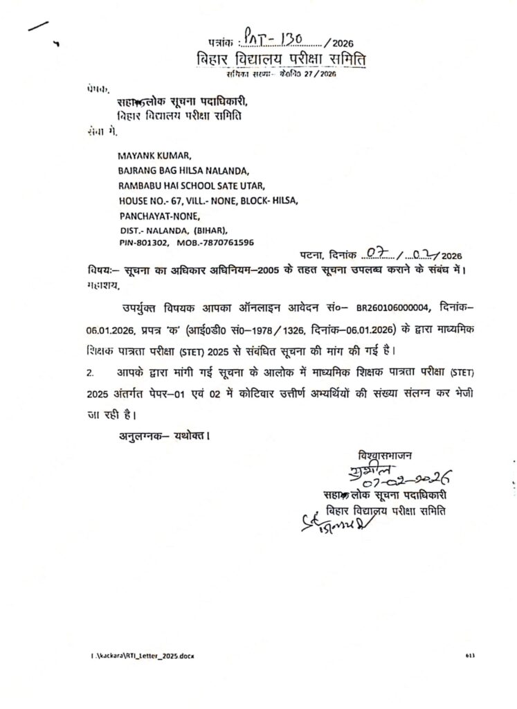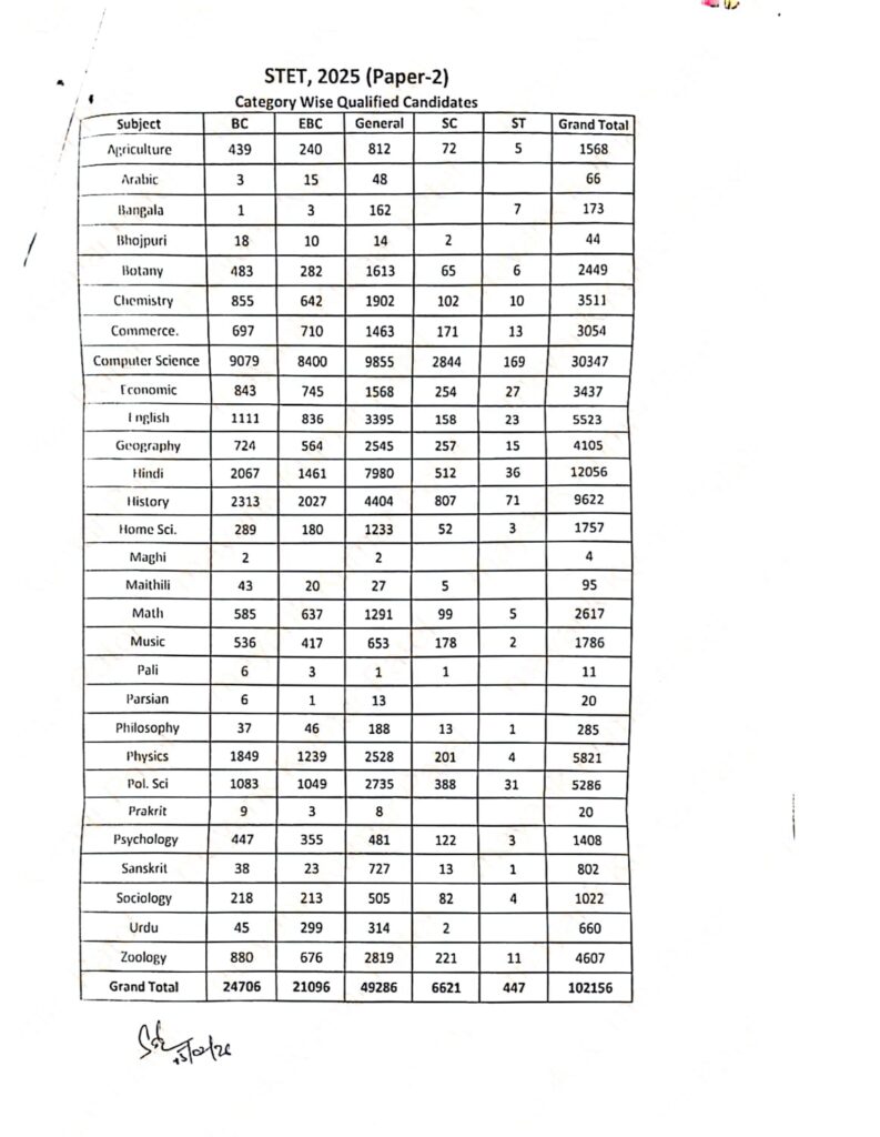 Bihar STET Result 2025 में दर्ज जानकारी